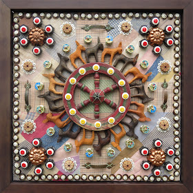 It has happened again! I'm behind on my blogging! I finished stitching this Found Object Mandala before our trip to New York City but I didn't get it mounted, framed and photographed until after our return. Of course, that was last week, but last week also had me going to the Lauren Rogers Museum of Art in Laurel, Mississippi to present the Artist Talk before the public reception for SAQA's (Studio Art Quilt Associates) global exhibition 3D Expressions!